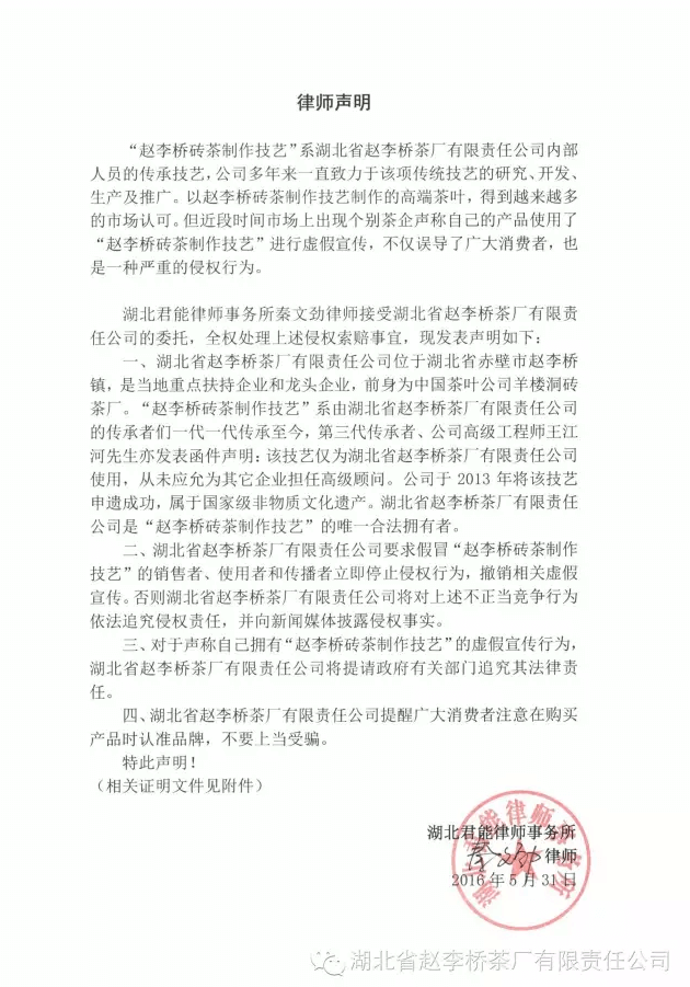 2016-06-02 湖北省趙李橋茶廠有限責任公司