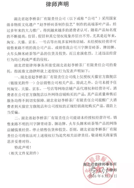 2016-08-05 湖北省趙李橋茶廠有限責(zé)任公司