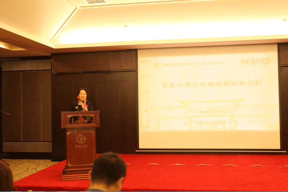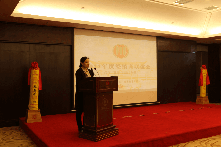 大會首先由公司執(zhí)行董事李云致歡迎詞,她歡迎并感謝來自全國各地的經(jīng)銷商在過去的一年為公司的發(fā)展獻計獻策,奮力拼搏,今天來這里與大家分享心得,共創(chuàng)美好未來。近年來,趙李橋茶廠以穩(wěn)健的步伐,發(fā)展壯大,在產(chǎn)品研發(fā)、質(zhì)量管控、品牌推廣、團隊建設(shè)方面取得了長足的進步,2016年銷售額過億元,創(chuàng)歷史新高。2017年公司將以市場為主導(dǎo),進一步加強廠商合作,科學(xué)規(guī)劃,實現(xiàn)合作共贏。