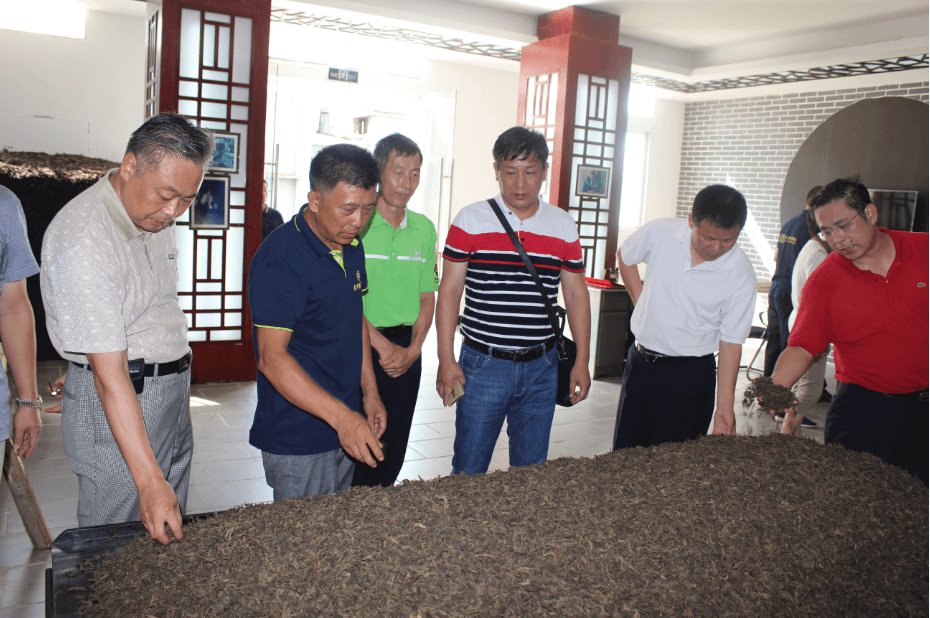 7月20日,東莞市茶文化促進(jìn)會會長梁海潛攜東莞市政協(xié)原副主席朱伍坤、政協(xié)委員、市委宣傳部副部長趙國營、 黑域金鋼茶業(yè)總經(jīng)理車勁等 一行10人蒞臨考察趙李橋茶廠,陪同考察的還有赤壁市政協(xié)副主席王茂煉、赤壁市茶產(chǎn)業(yè)發(fā)展局局長李新華等。公司總經(jīng)理金傳炎、副總經(jīng)理金莉、甘多平對他們的到來表示熱烈歡迎,并陪同他們參觀了原料儲存庫、生產(chǎn)車間、趙李橋磚茶制作技藝傳習(xí)所。