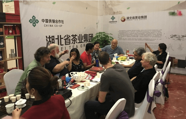 推介會前,中外嘉賓陸續(xù)到湖北省茶業(yè)集團華龍城展廳品茶交流,對集團旗下系列產(chǎn)品贊不絕口