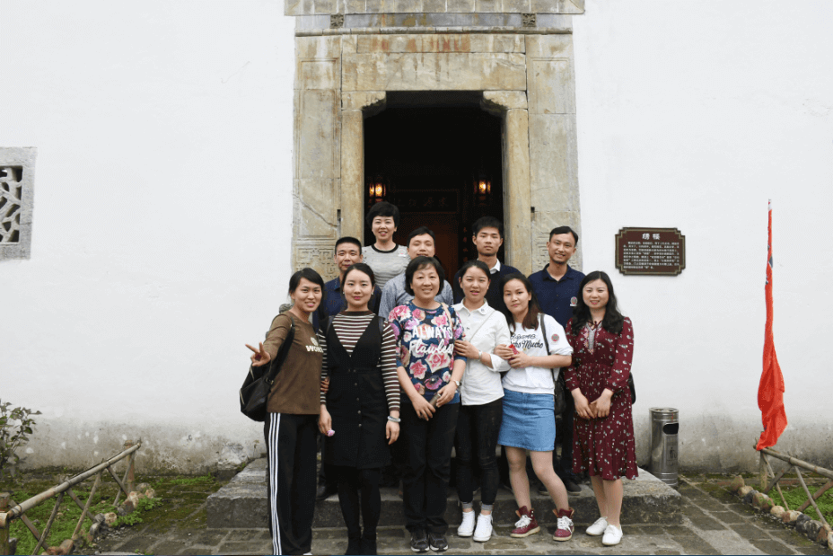 公司門口“川”字茶家人合影