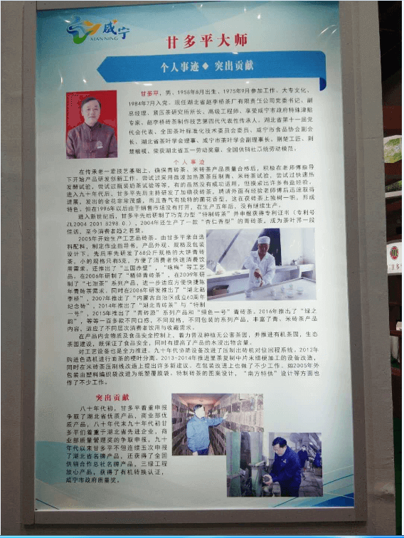 我公司是國(guó)家定點(diǎn)生產(chǎn)邊銷(xiāo)茶的“中華老字號(hào)”企業(yè),磚茶生產(chǎn)歷史悠久,2015年,“磚茶制作技藝”被列入“第四屆中國(guó)非物質(zhì)文化遺產(chǎn)代表名錄”。作為緊壓茶龍頭企業(yè)和咸寧市知名企業(yè),受邀參加了本次活動(dòng)。“趙李橋磚茶制作技藝”第四代代表性傳承人甘多平大師精心制作的“匠心”茶產(chǎn)品得以完美展現(xiàn)并受到追捧,其研發(fā)成果也得到了人社部門(mén)領(lǐng)導(dǎo)的充分肯定。