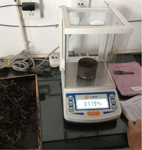 隨機(jī)抽樣——在卸茶過程中,質(zhì)量檢測(cè)技術(shù)人員隨機(jī)抽取各茶袋中的原料,均勻攪拌后取樣