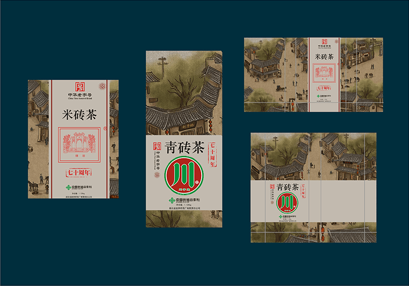 米磚茶以“盛世牌坊”為產(chǎn)品名稱,包裝上的牌坊圖案設(shè)計(jì)成立體狀,在產(chǎn)品陳列的時(shí)候可以立起來(寓意立牌坊),再現(xiàn)當(dāng)年盛世;青磚茶以“世紀(jì)川承”為產(chǎn)品名稱,包裝正面上部以線條形式寓意羊樓洞的三條泉水,匯聚一起合為川(水為財(cái),意為聚財(cái)),原川字牌如流水百年興旺,傳承世紀(jì)之使命。