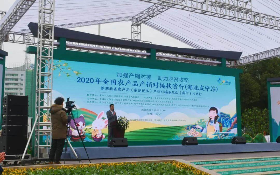 12月16日至18日,由國家商務(wù)部和湖北省政府指導(dǎo),中國蔬菜流通協(xié)會、湖北省商務(wù)廳和咸寧市人民政府共同主辦的“ 2020年全國農(nóng)產(chǎn)品產(chǎn)銷對接扶貧行(湖北咸寧站)暨湖北省農(nóng)產(chǎn)品(荊楚優(yōu)品)產(chǎn)銷對接幕阜山(咸寧)片區(qū)行"活動在咸寧市舉行。活動涵蓋省內(nèi)農(nóng)特產(chǎn)品和本地扶貧產(chǎn)品展示展銷、走進原產(chǎn)地主題體驗日、產(chǎn)銷對接、農(nóng)商互聯(lián)產(chǎn)業(yè)資源對接交流會等活動。