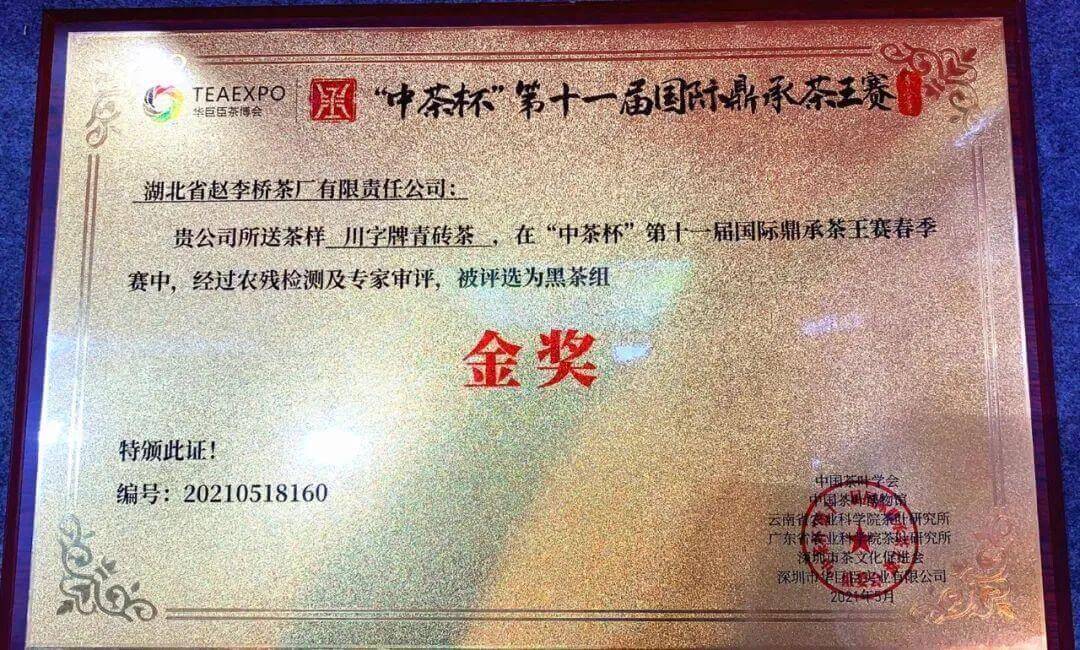 湖北省茶業(yè)集團趙李橋茶廠“川”字青磚茶斬獲“中國茶界奧斯卡”金獎