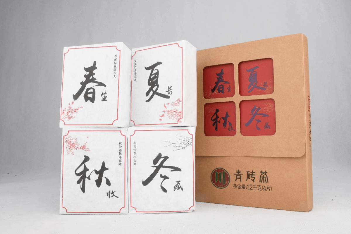 “春夏秋冬”這款茶蘊(yùn)含春生、夏長、秋收、冬藏的文化傳統(tǒng)理念,包裝設(shè)計簡約大方,篆章封口,古樸典雅。最大的亮點(diǎn)是,該款茶是新開發(fā)的一款松散型青磚茶,取飲更加便捷。