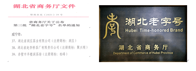 2021年12月9日湖北省商務(wù)廳認(rèn)定湖北省趙李橋茶廠有限責(zé)任公司“聚興順”商標(biāo)為湖北省第三批 “湖北老字號”。
