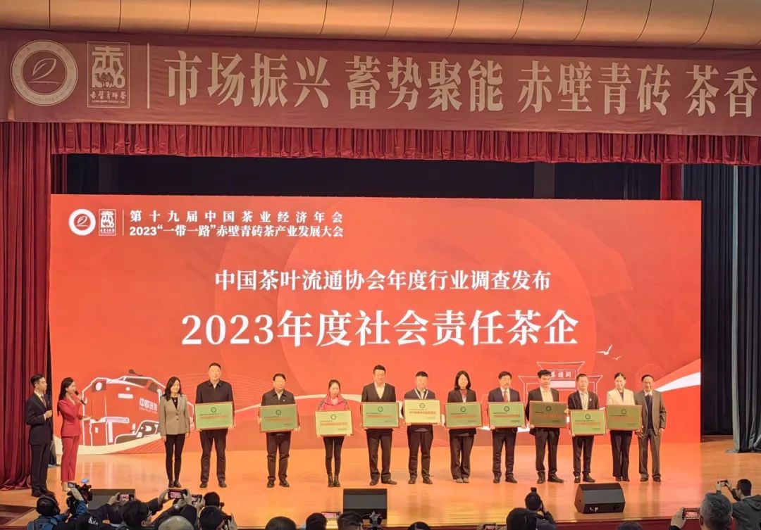 開幕式上,公布了2023年度中國茶葉行業(yè)調查工作結果,湖北省茶業(yè)集團獲評“社會責任茶企”,趙李橋茶廠技術總監(jiān)兼緊壓茶研究所所長陳軍海同志入選第八批“國茶人物·制茶大師”名單(黑茶類)。