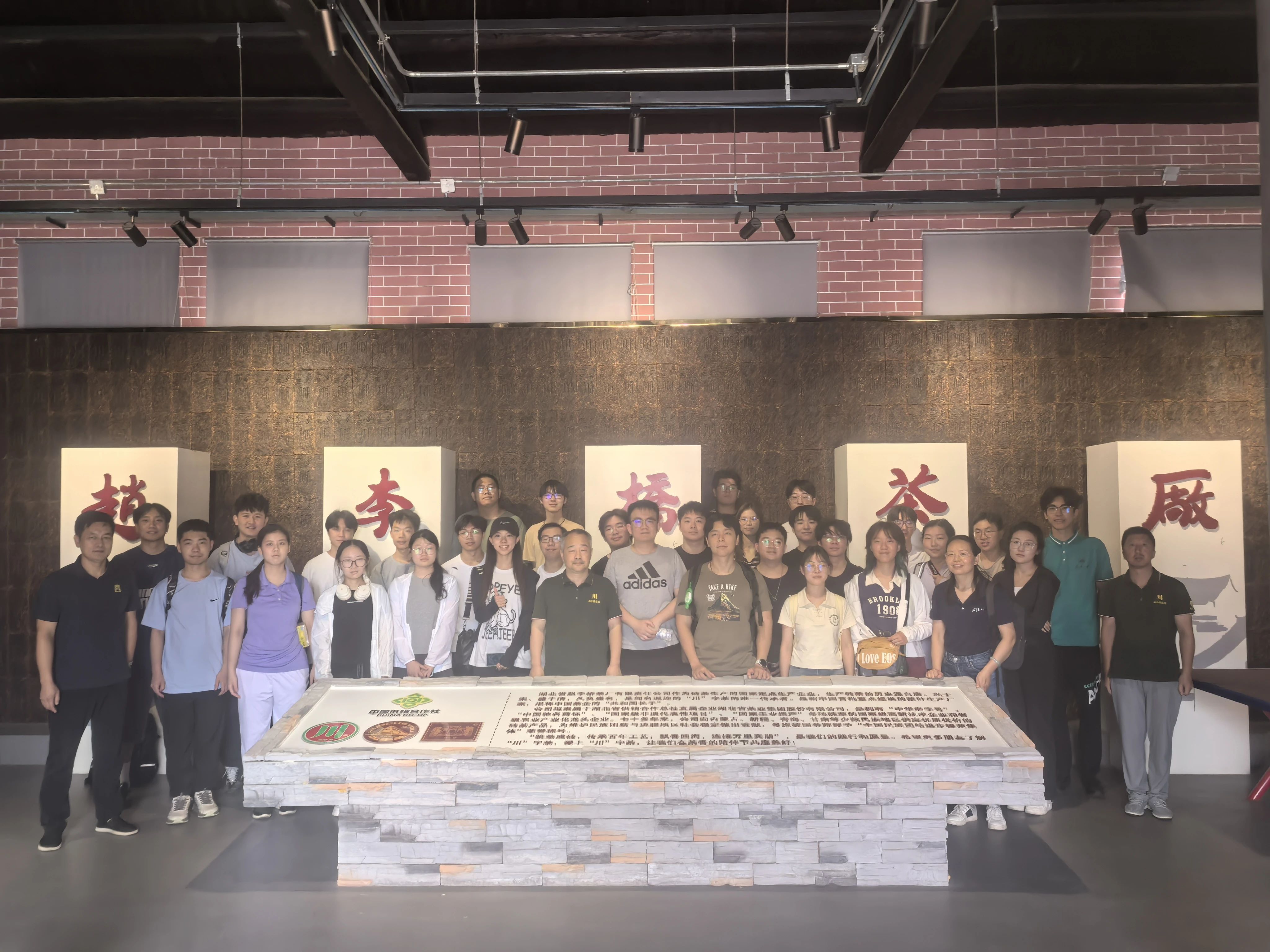 在“趙李橋磚茶制作技藝” 第五代代表性傳承人陳軍海的專業(yè)講解下,調(diào)研團(tuán)隊(duì)首先走進(jìn)川字茶博物館。一件件承載歷史的制茶工具、一幅幅珍貴的老照片,生動(dòng)訴說(shuō)著茶廠百余年的風(fēng)雨歷程;館內(nèi)豐富的藏品與史料,清晰展現(xiàn)了赤壁青磚茶 “源于唐、興于宋、盛于明清” 的發(fā)展脈絡(luò),以及其在萬(wàn)里茶道貿(mào)易中扮演的重要角色。同學(xué)們認(rèn)真聆聽(tīng)講解,不時(shí)提問(wèn)互動(dòng),深入探尋青磚茶的文化內(nèi)涵。
