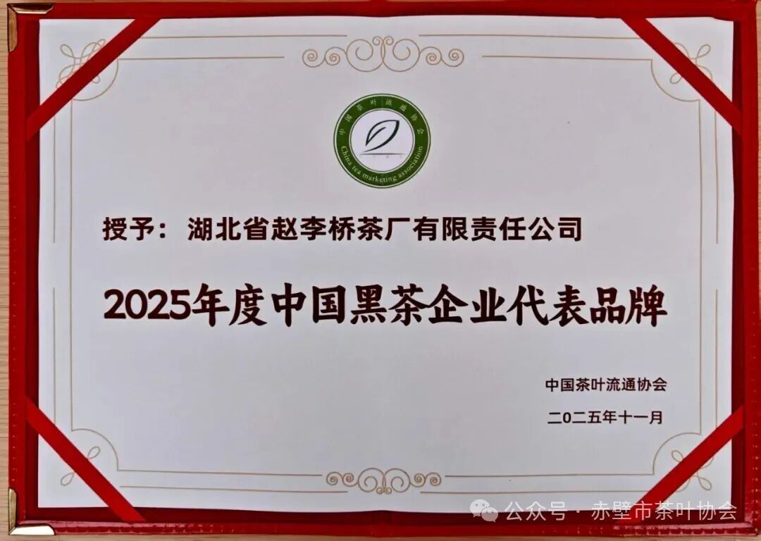 喜訊 ▏趙李橋茶廠“川”字牌青磚茶獲評“2025中國黑茶企業(yè)代表品牌”!